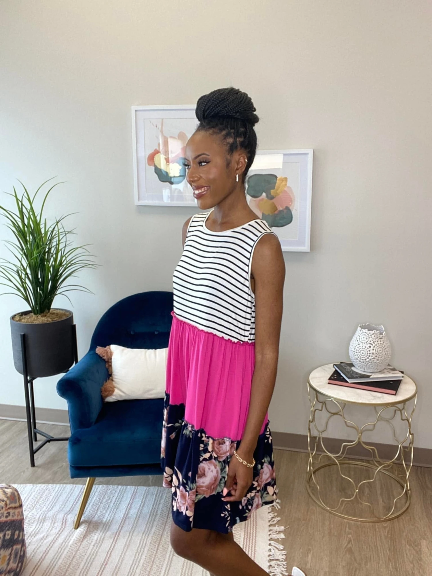 Emry: 5’5 L-XL in tops and dresses, size 14 in bottoms.