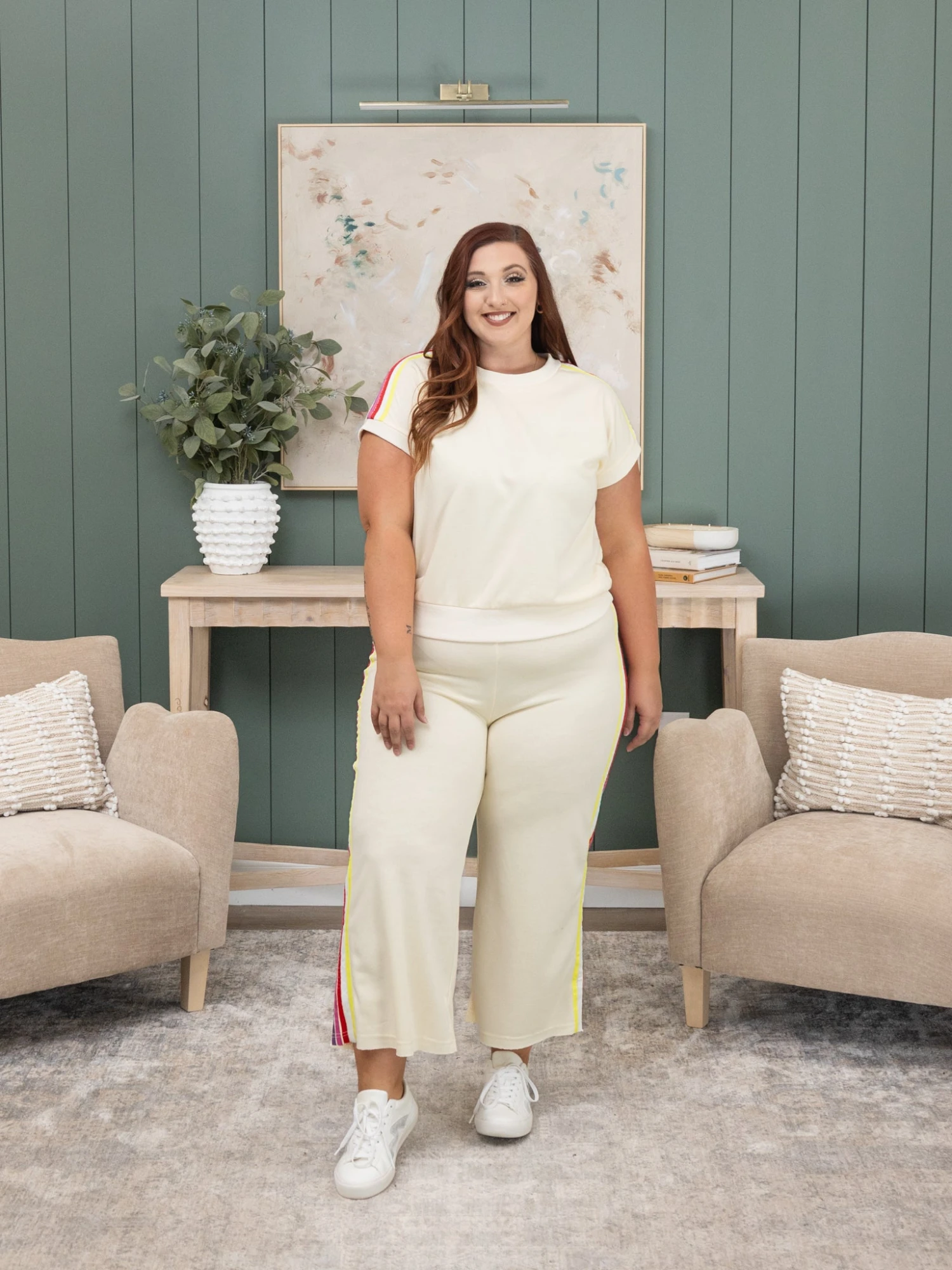 Features: Elastic Waist,Raw Edge, Cropped Straight Pant