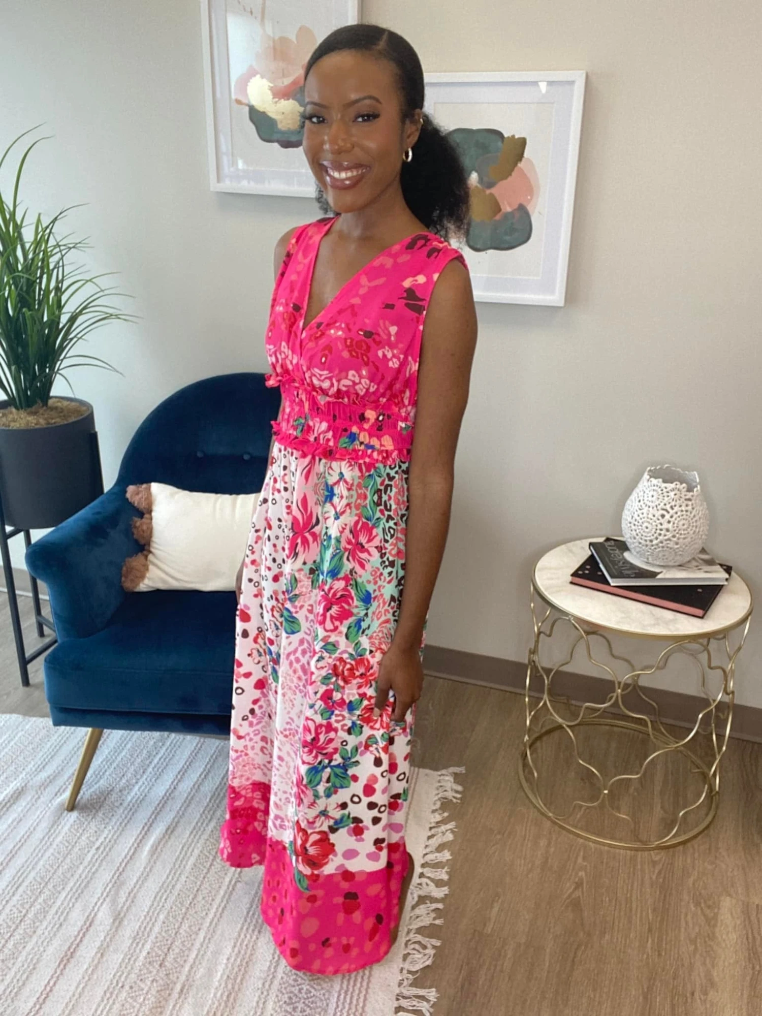 The “Organized Mood Dress” has arrived! This super cute floral print maxi dress is just what you need! We are loving the back tie! Be sure to snag one before they sell out!