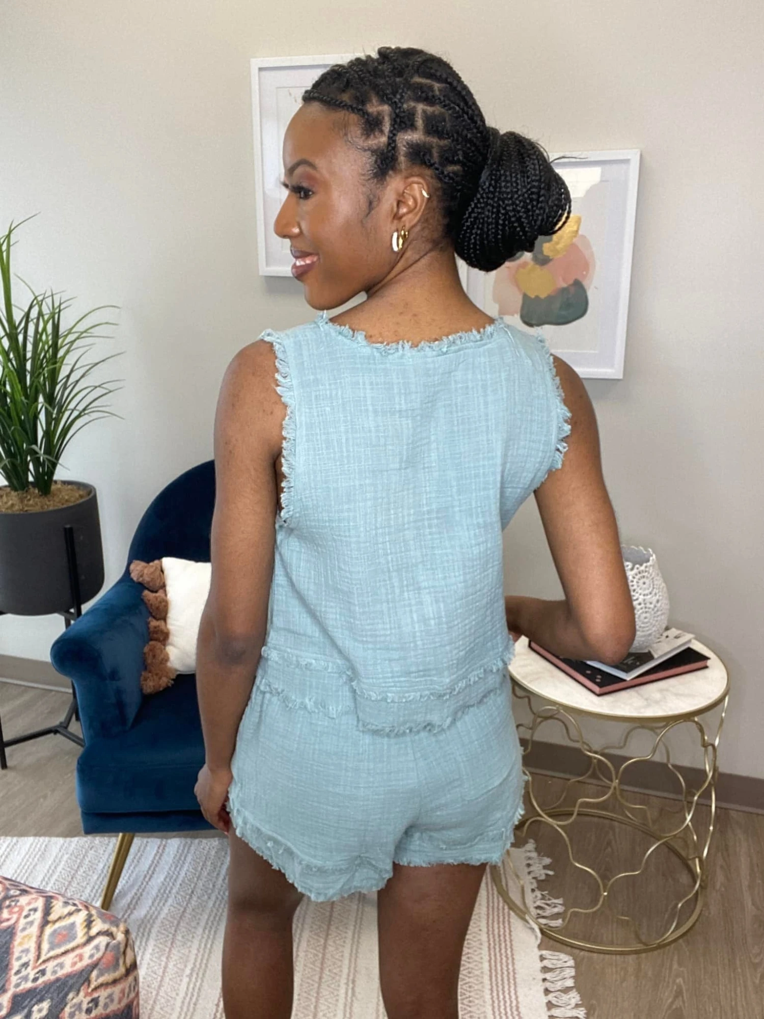 The “Pack A Bag Set” has arrived! This frayed detailed set is a must have! With a gorgeous shirt and shorts with functional pockets, you cannot go wrong here! Snag one before they sell out, you know they will!