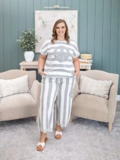 Peace Sign Striped Print Wide Leg Pants | S-L Pair W/ Sku60726