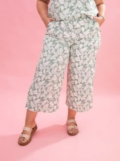Leaf Linen Crop Pants With Pockets By DD Design | S – 3XL Pair W/ Sku62199