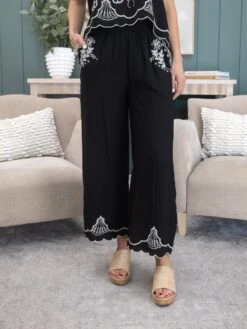 Embroidered Pants With Scalloped Hem | S – L Umgee
