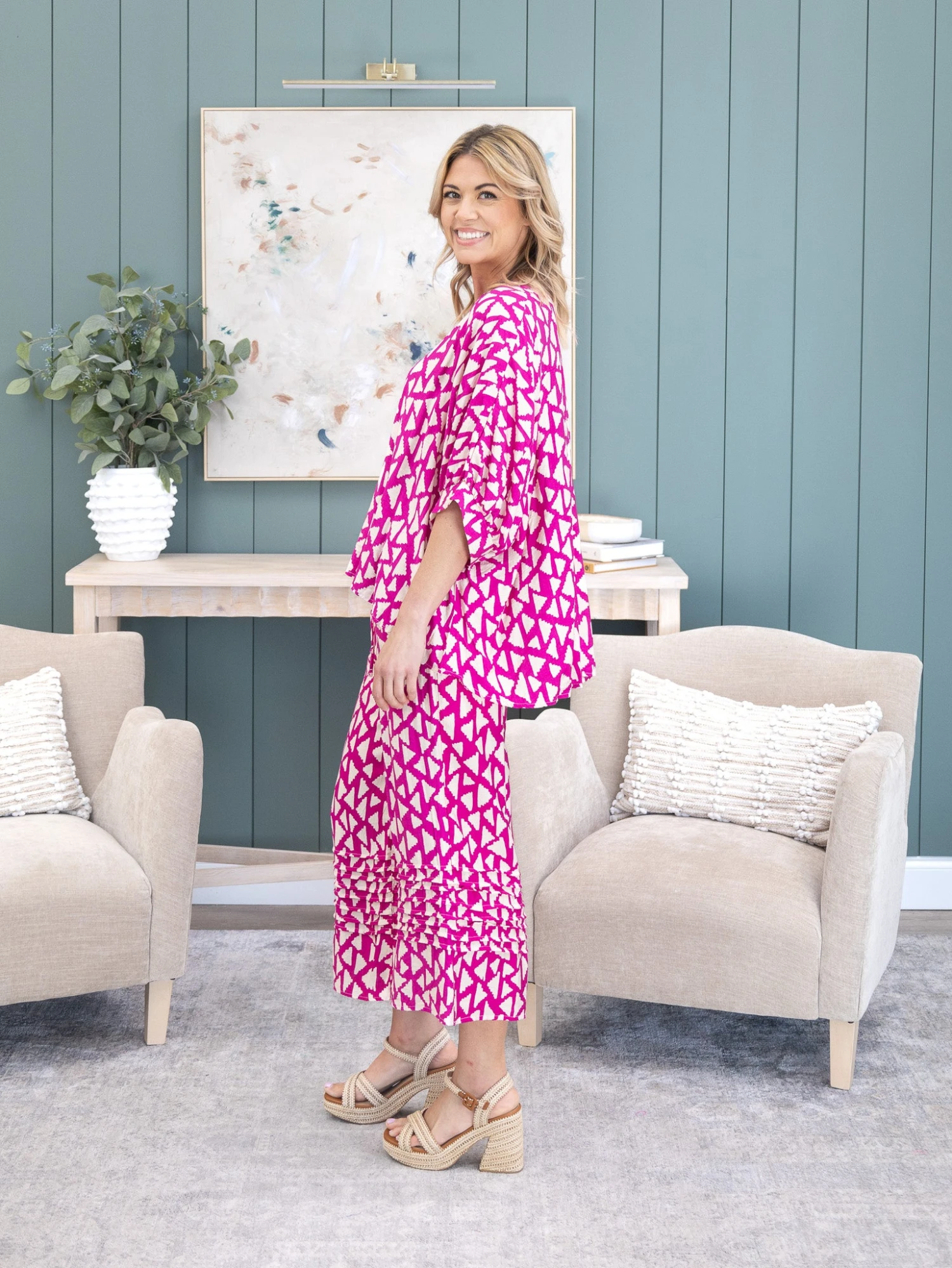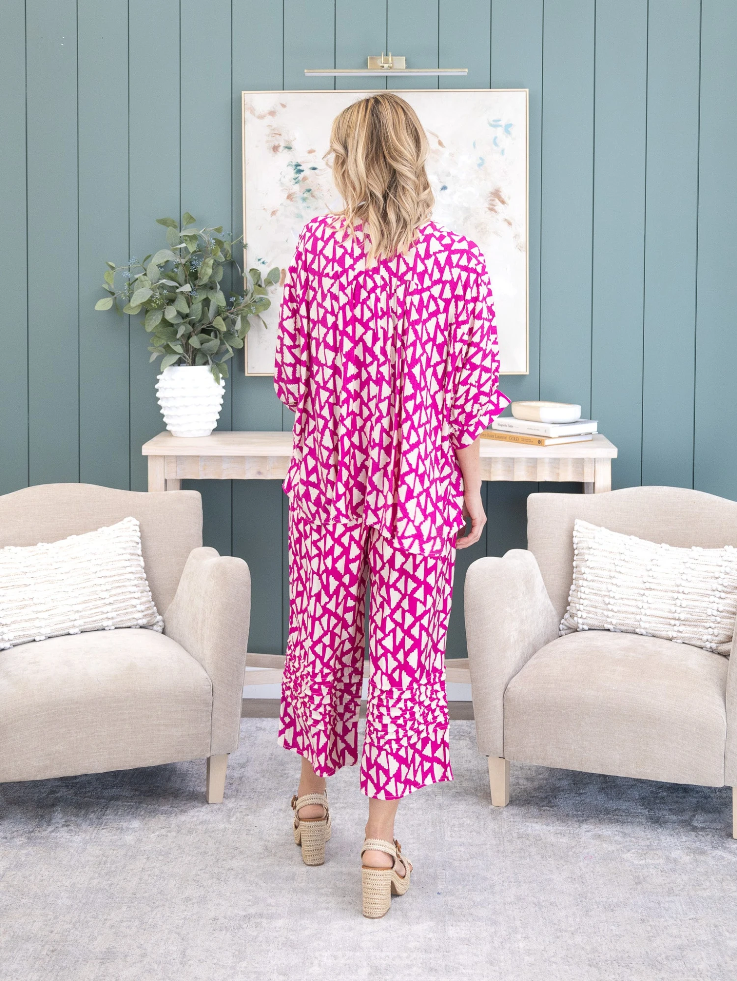 Features: Printed, Pintuck Pants, Pockets