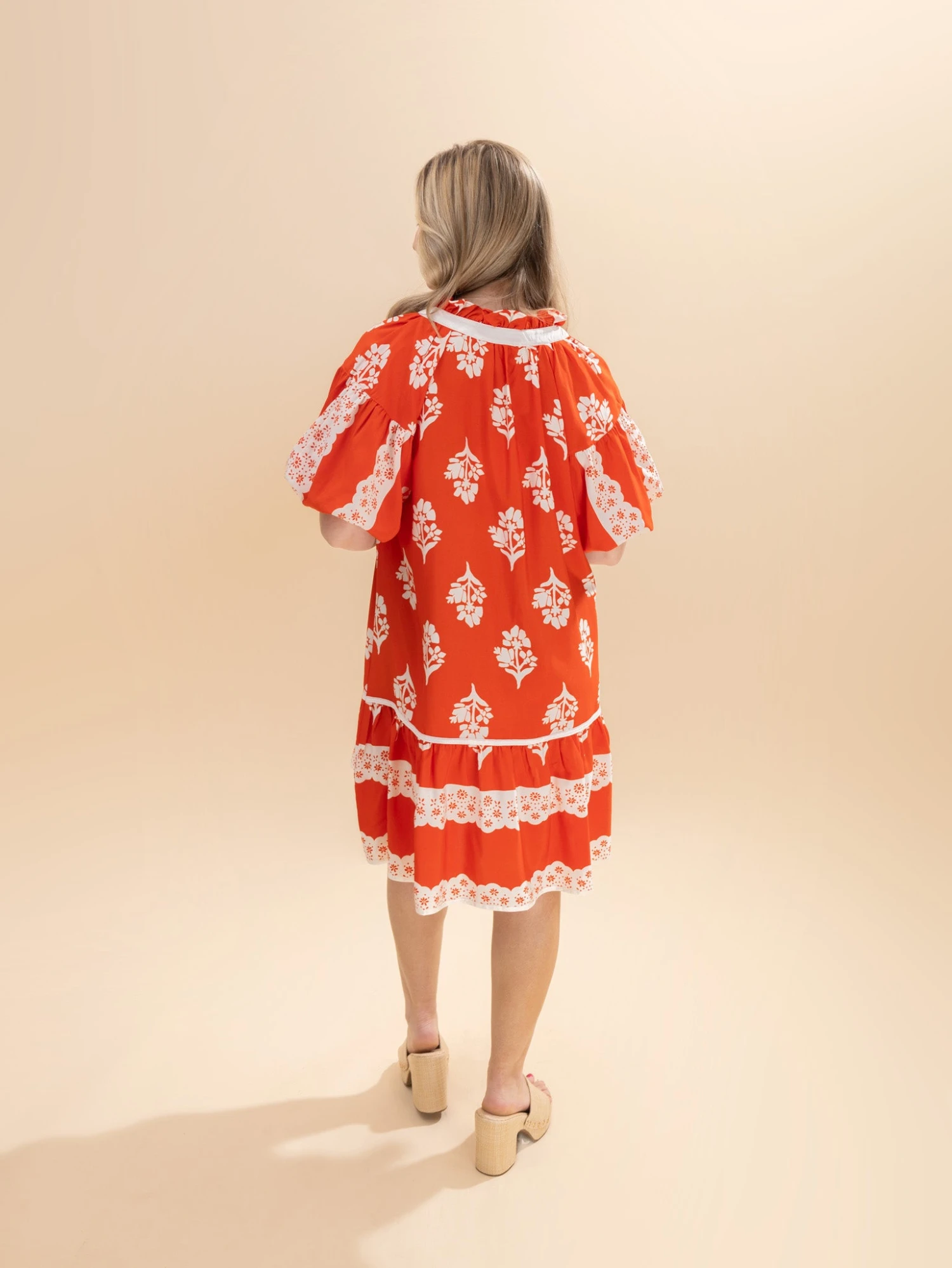 Features: V Neck, Puff Short Sleeves, Ruffle Hem, Printed Dress