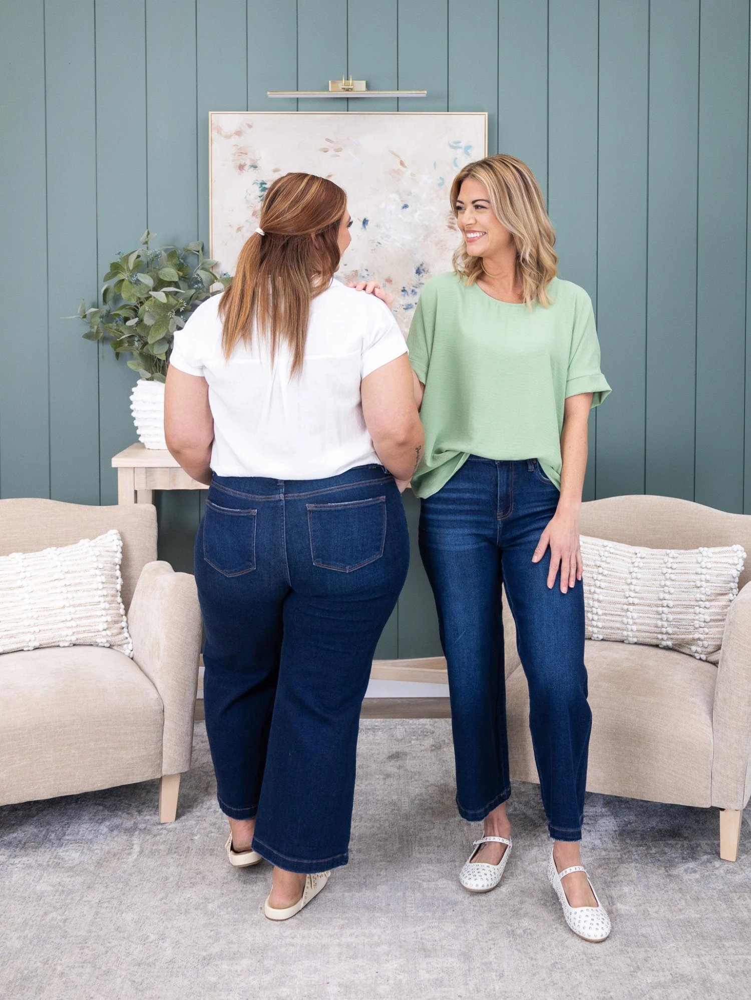 Features: Button Waist, Pockets, Cropped, Wide Leg