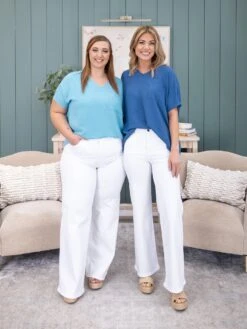 Brittany (short blonde hair) is 5’10, 36B bra, typically wears size S in tops and 3/5 in denim. Wearing size 3