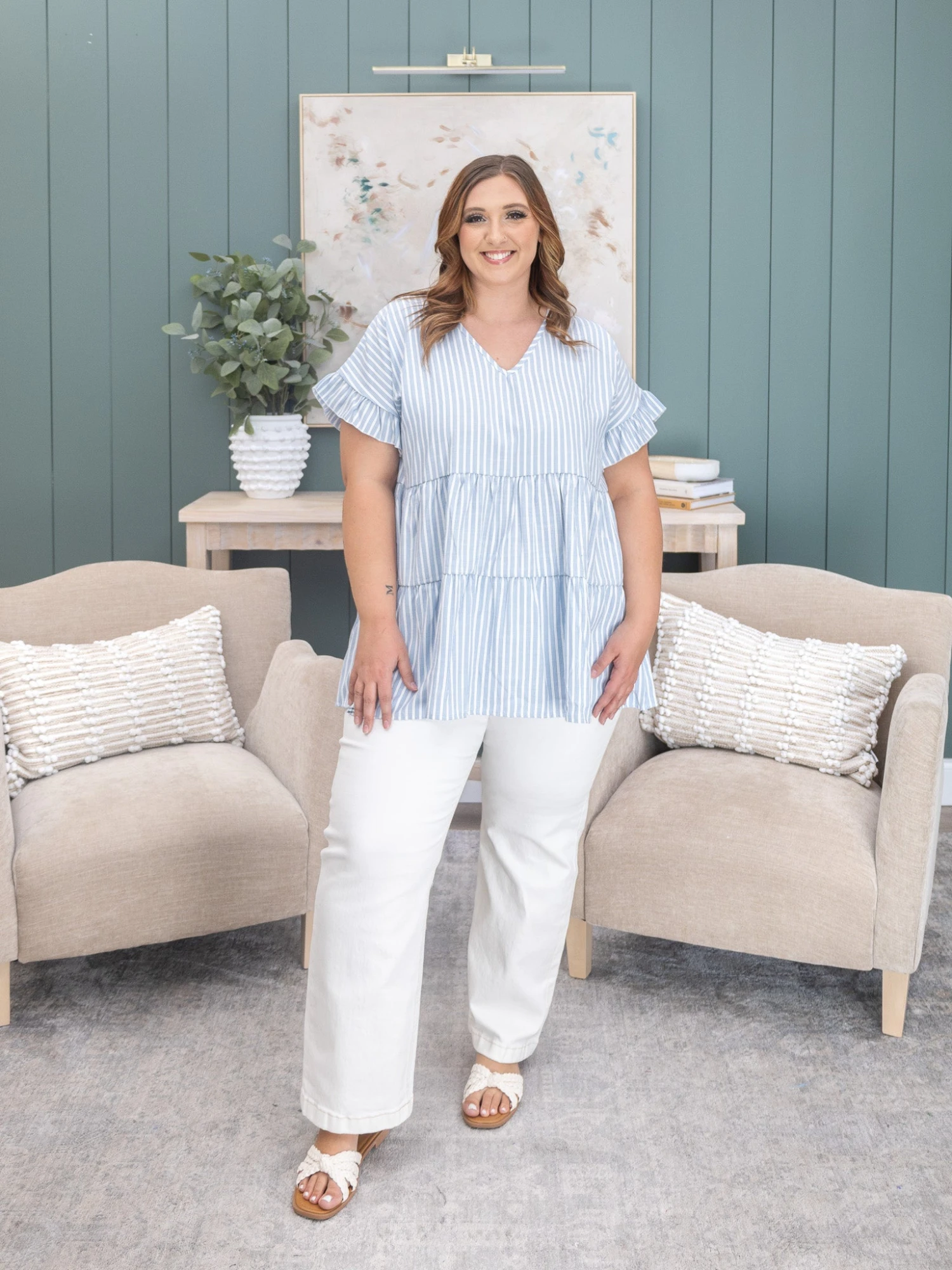 Erin is 5’8, 36C bra, typically wears size L/XL in tops and 14/15 in denim. Wearing size 1X