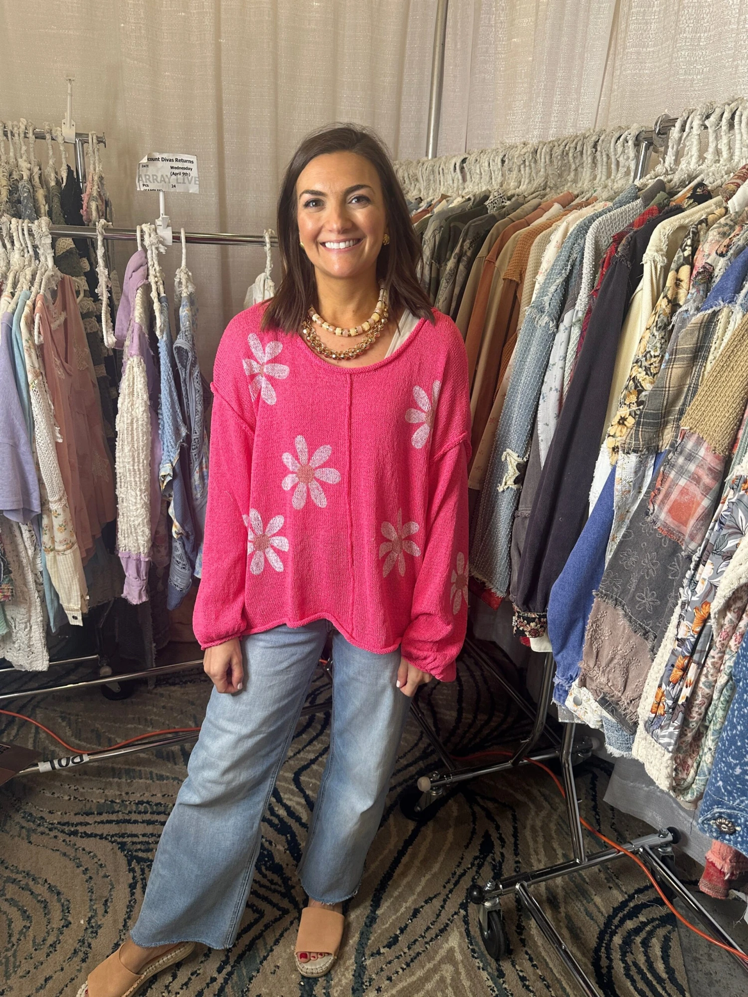 Features: Round Neck, Balloon Sleeve, Floral, Sweater