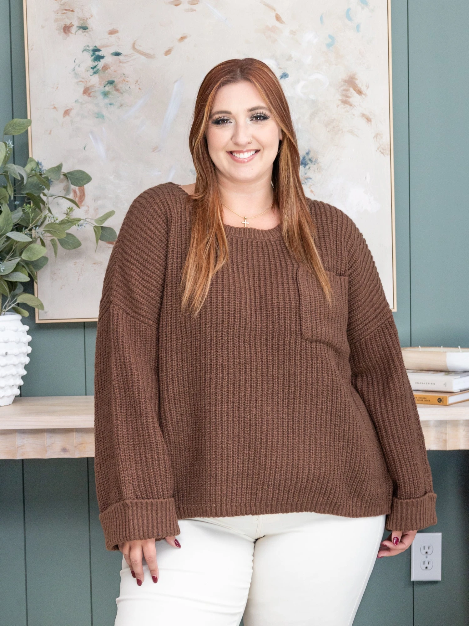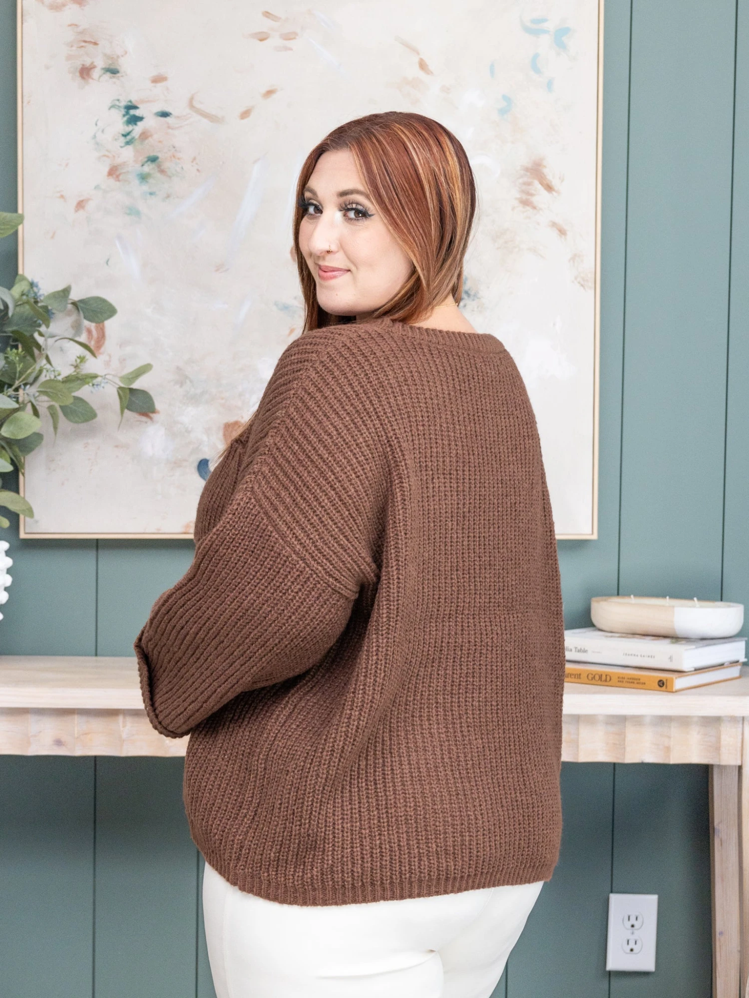 Erin is 5’8, 36C bra, typically wears size L/XL in tops and 14/15 in denim. Wearing size L. This fits tts, if you are between sizes you can size up for a more oversized fit or size down for a tighter fit.