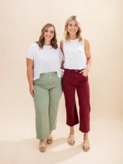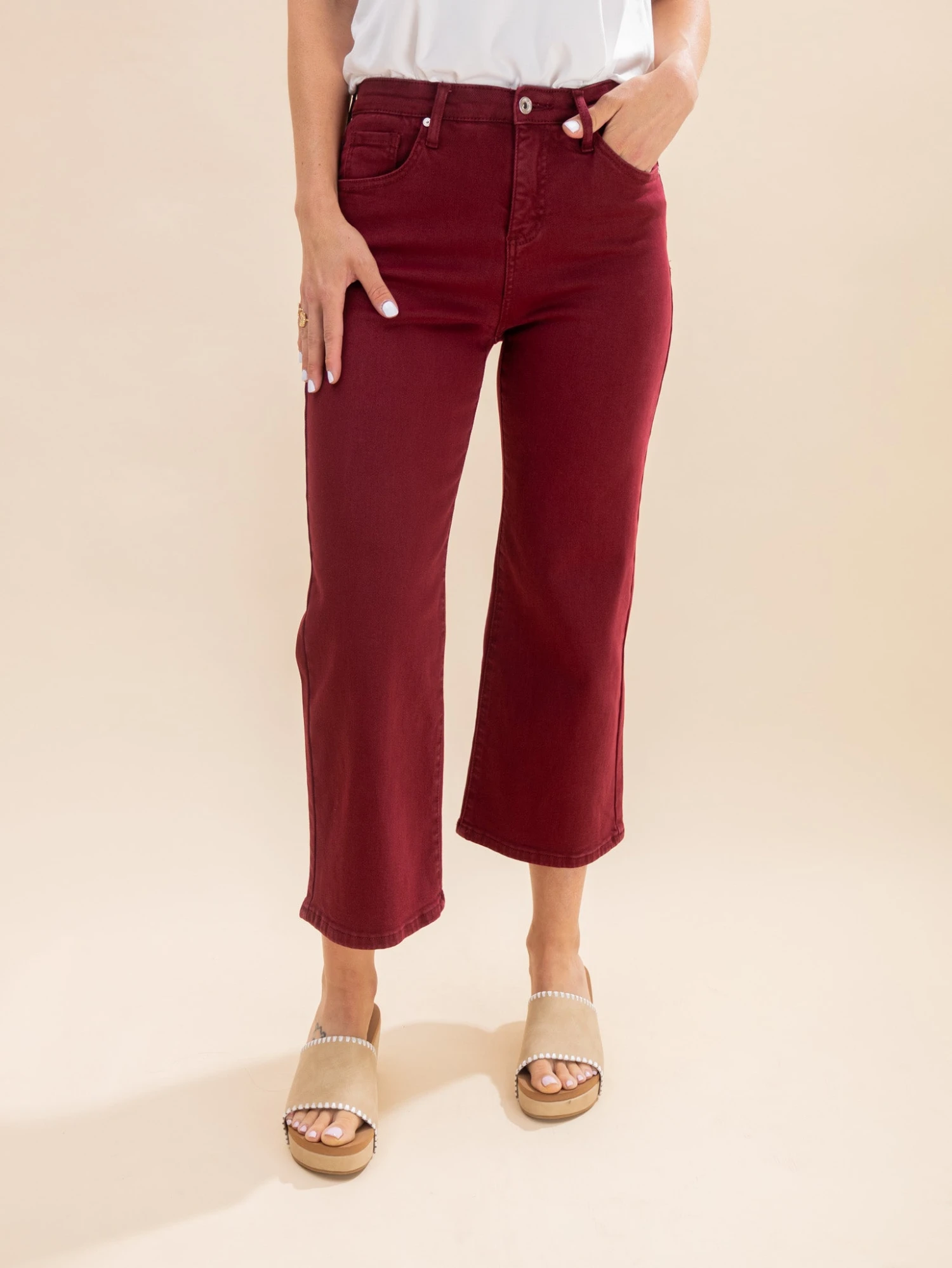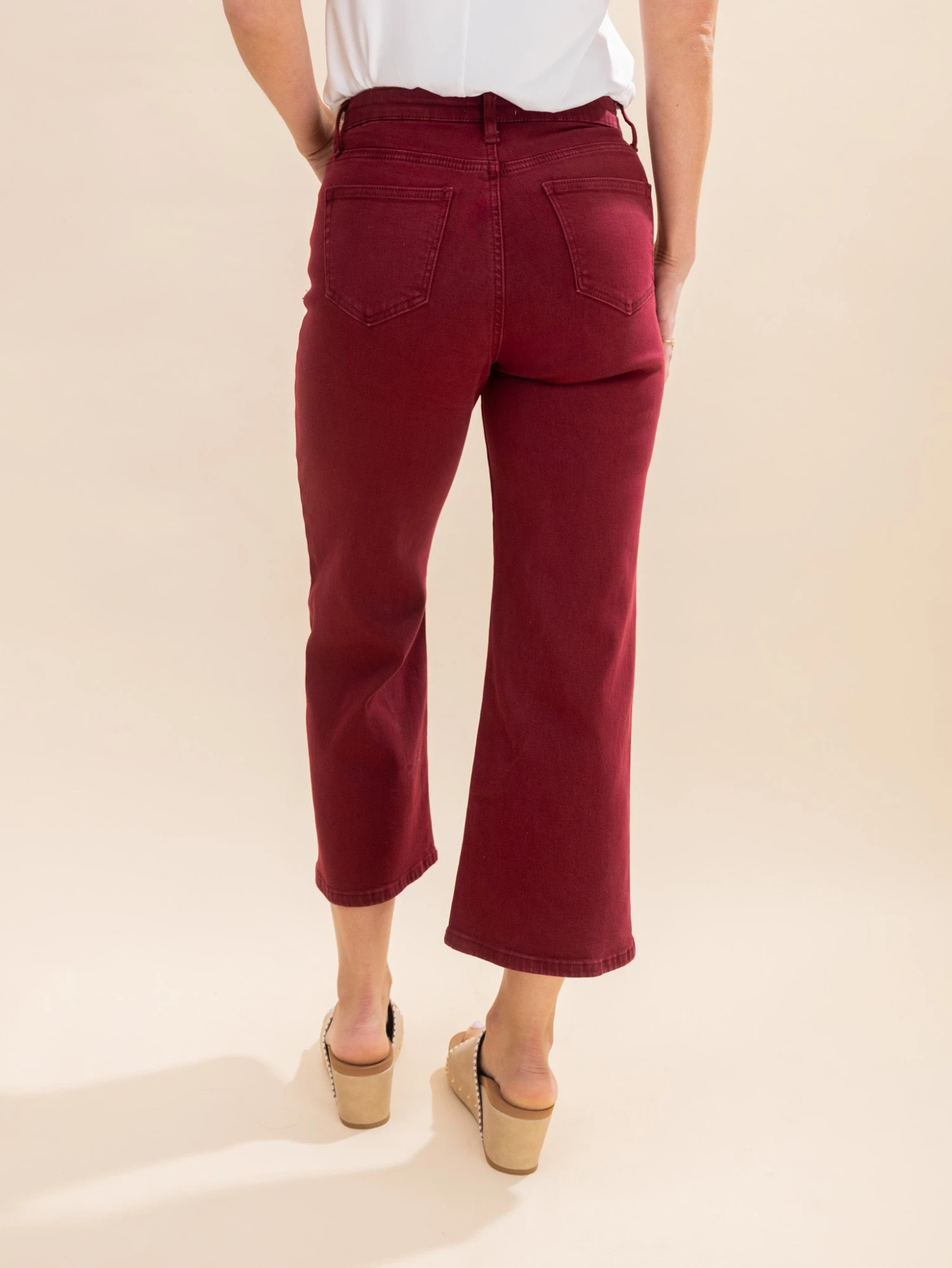 Features: Button/Zipper Waist, High Rise, Colored Cropped Boot Cut