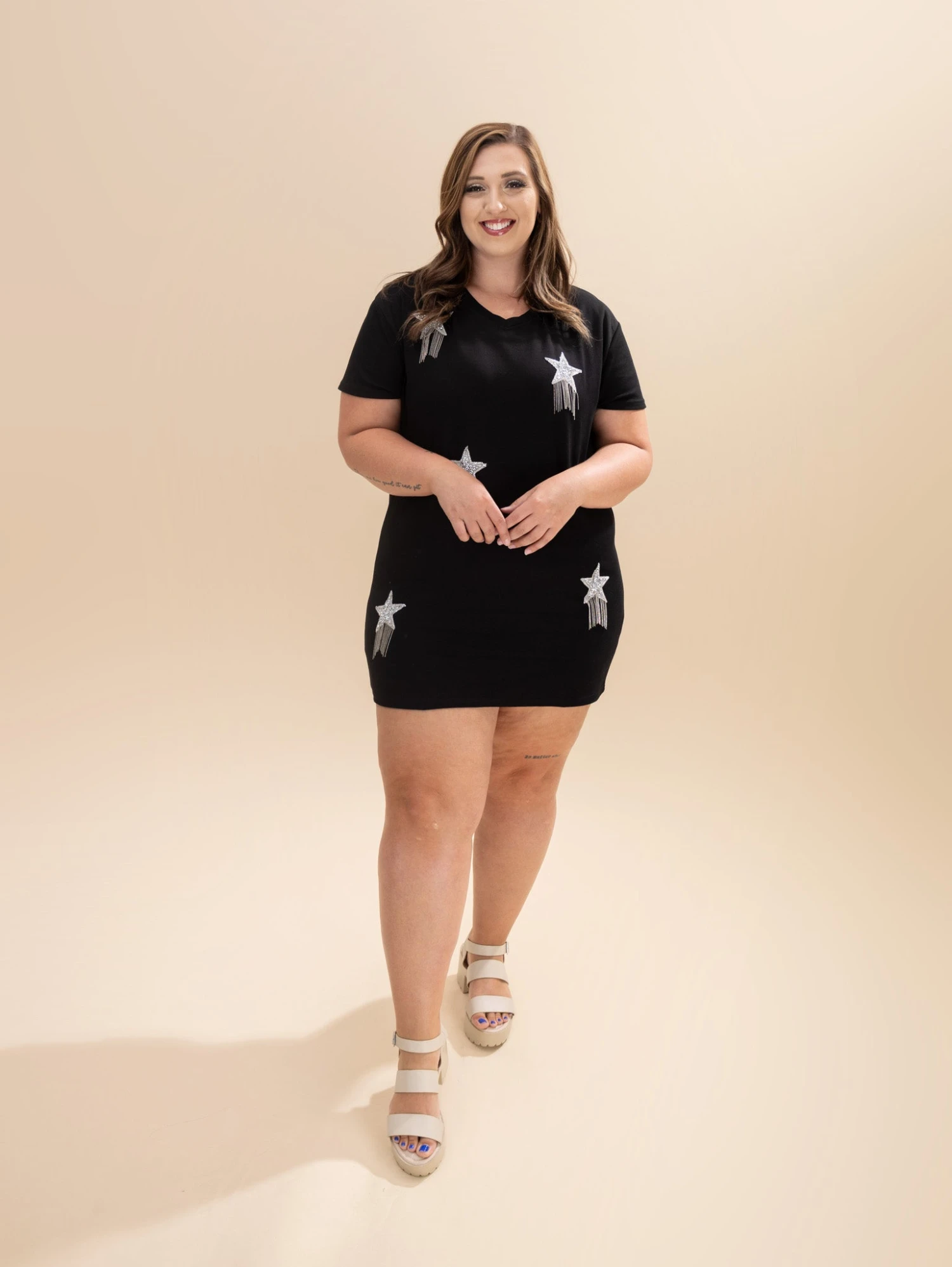 Features: V Neck, Short Sleeves, Studded Star Detail