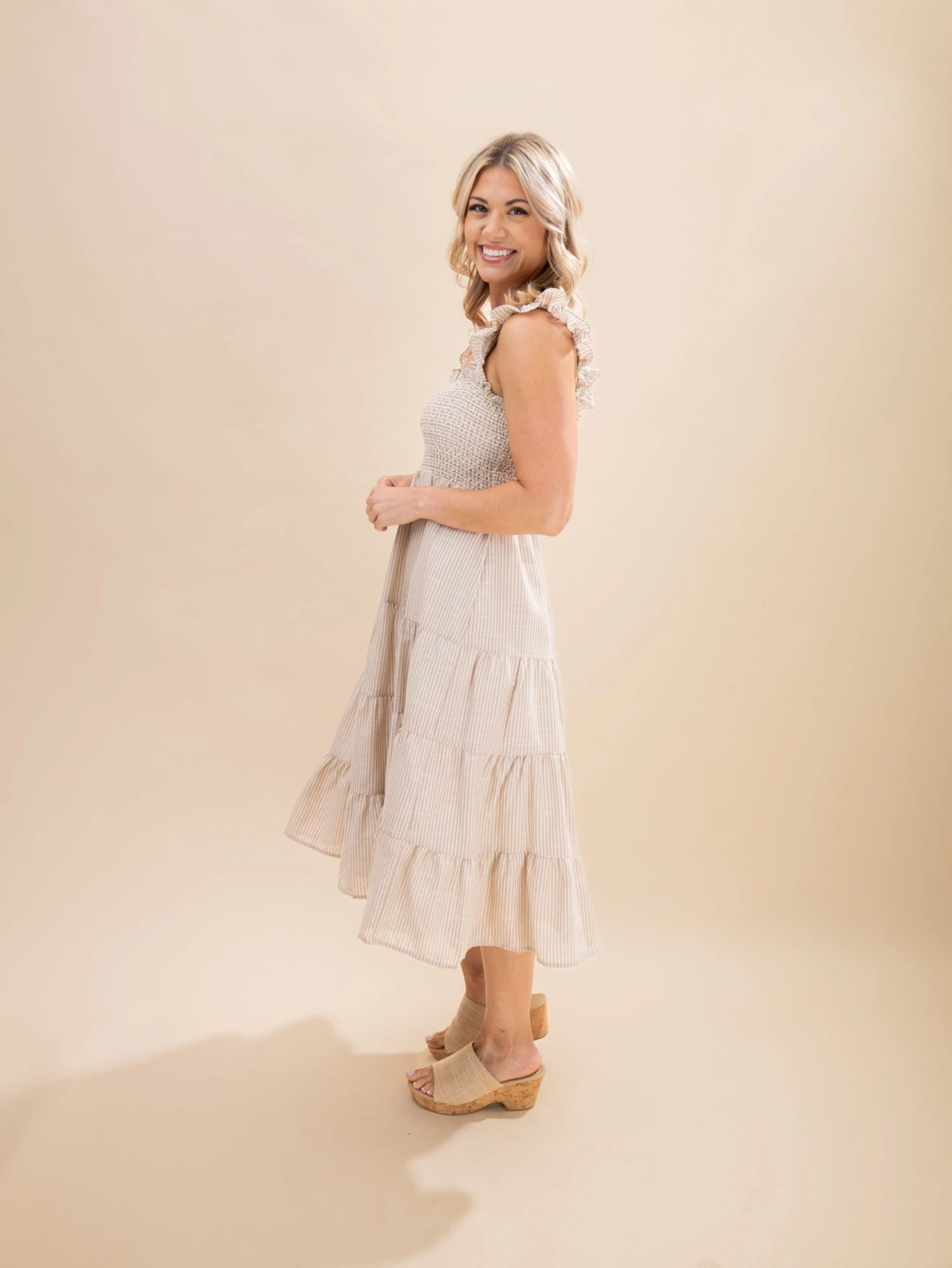 Features: Square Neck, Sleeveless, Smocked, Lined
