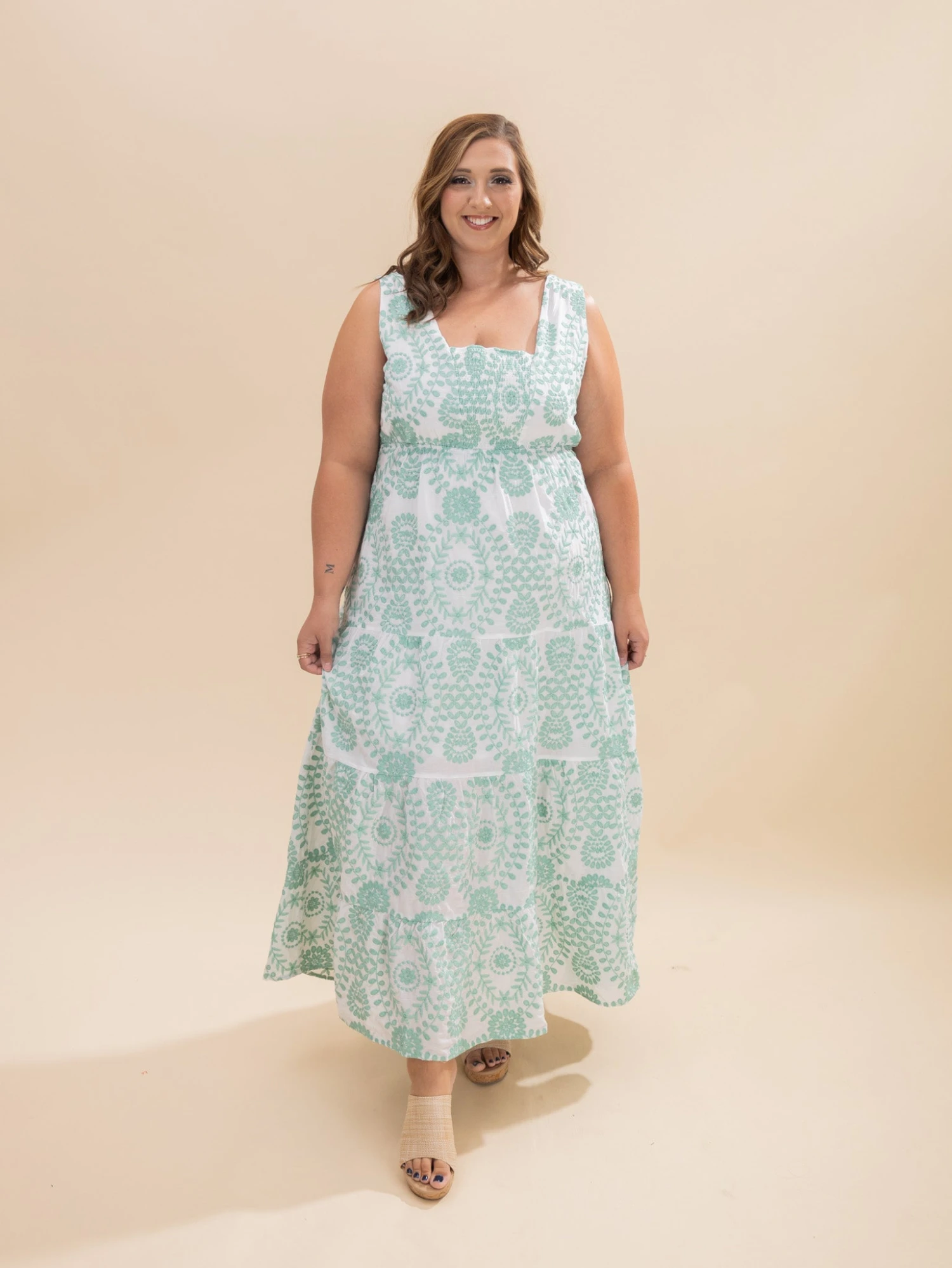 Features: Square Neck, Tie Open Back, Sleeveless, No Pockets, Floral Embroidered Tired Lined Maxi
