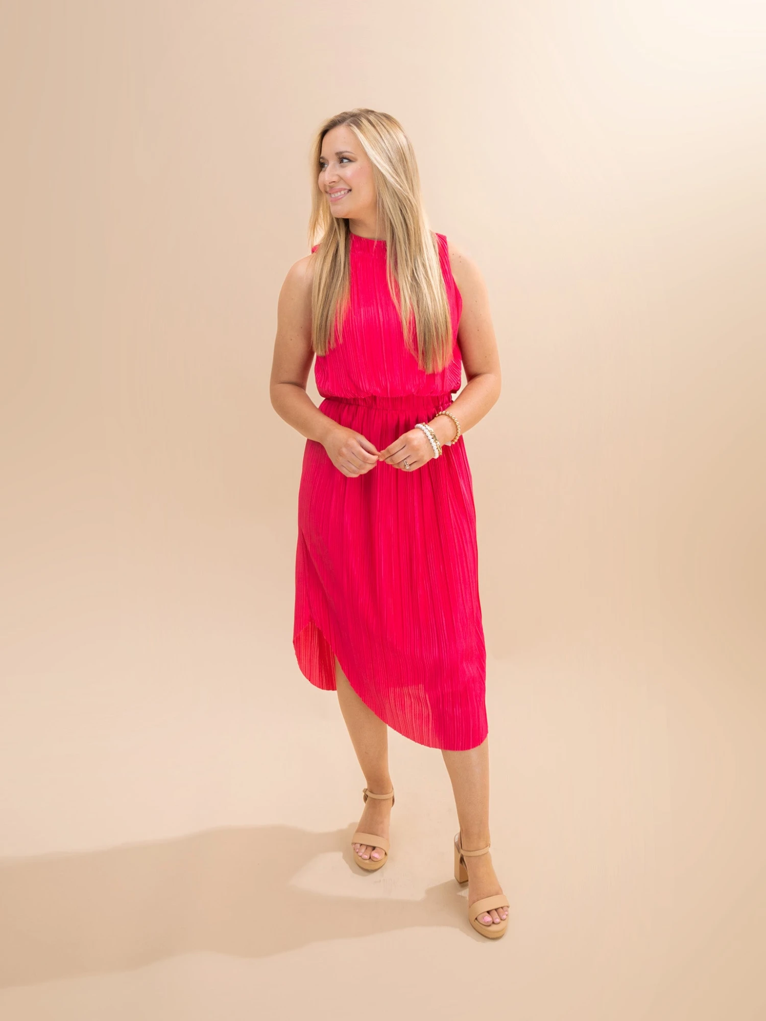 Features: Round Neck, Sleeveless, 2 Button Back Keyhole, Curved Hem, Lined Textured Dress