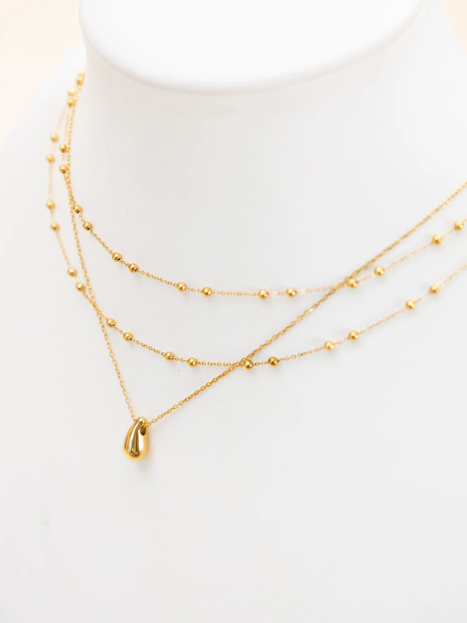 Features: Stainless Steel Dainty Layered Necklace With Gold Teardrop