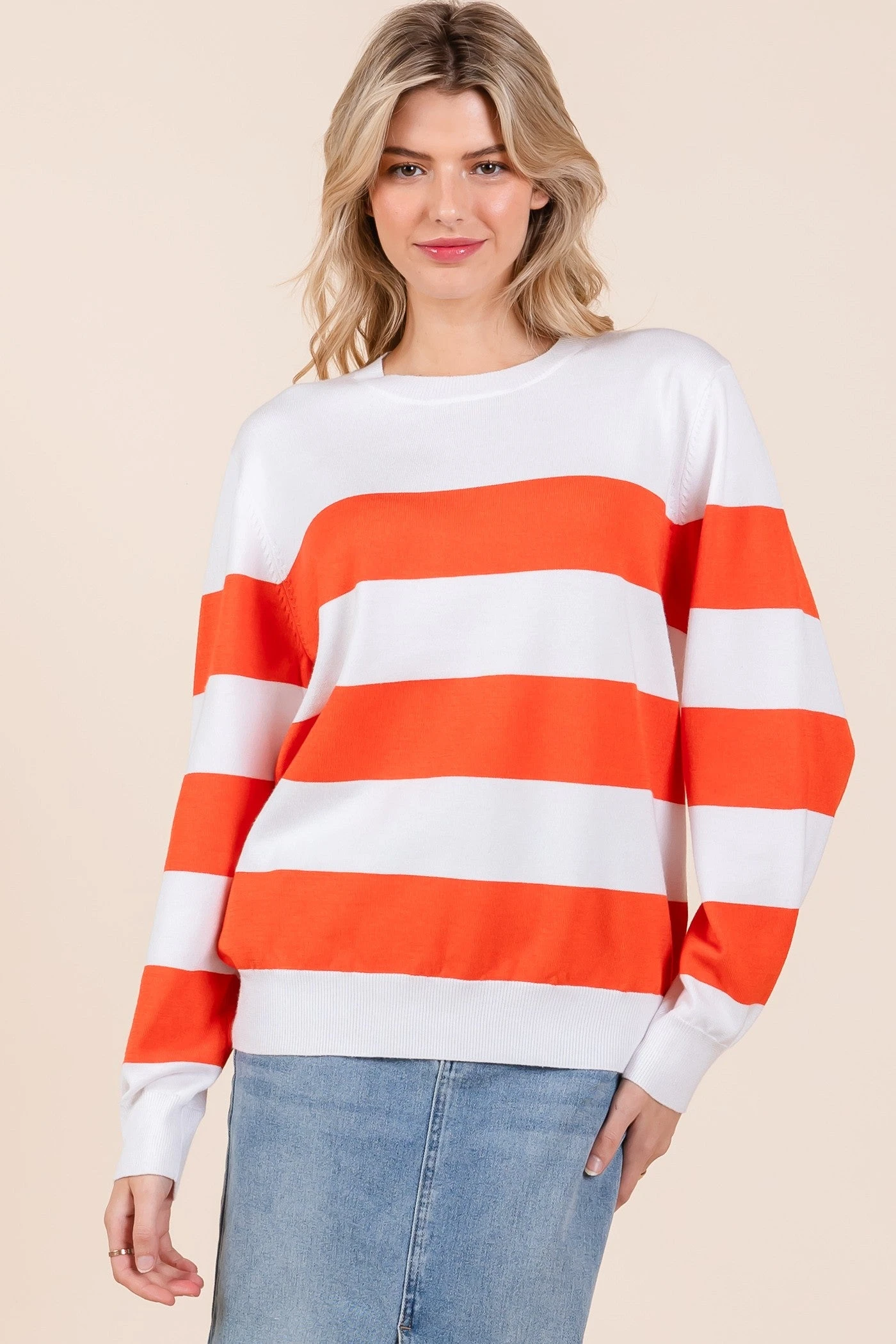 Features: Stripe, Knit, Long Sleeve, Sweater