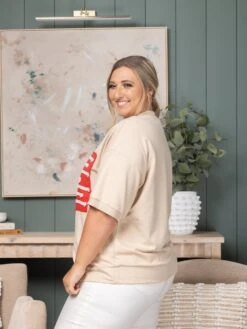 Acid Washed Drop Shoulder Flag Print Oversize Sweatshirt | S-3X