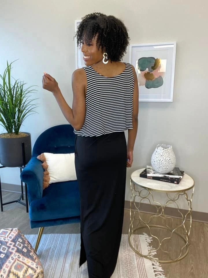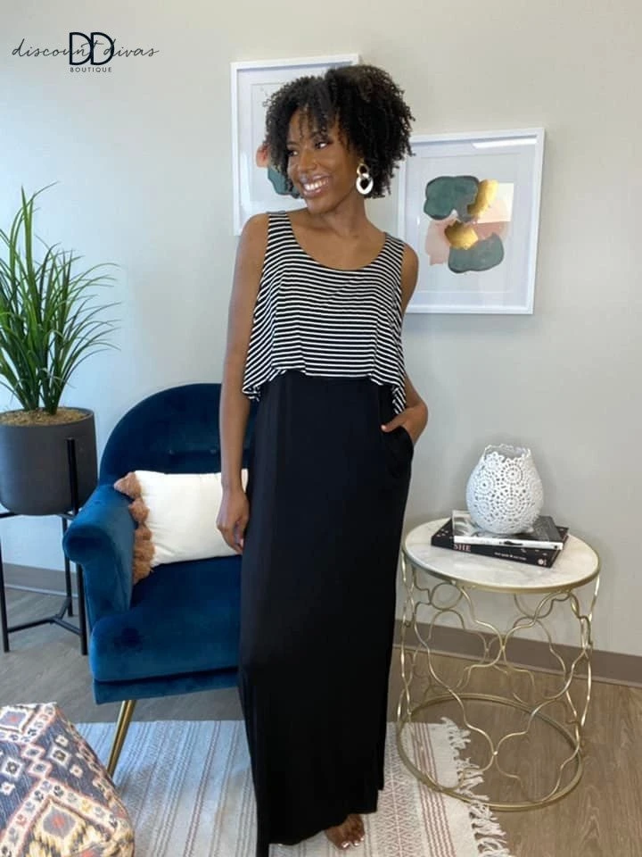 Features: Stripe and Solid Maxi Dress