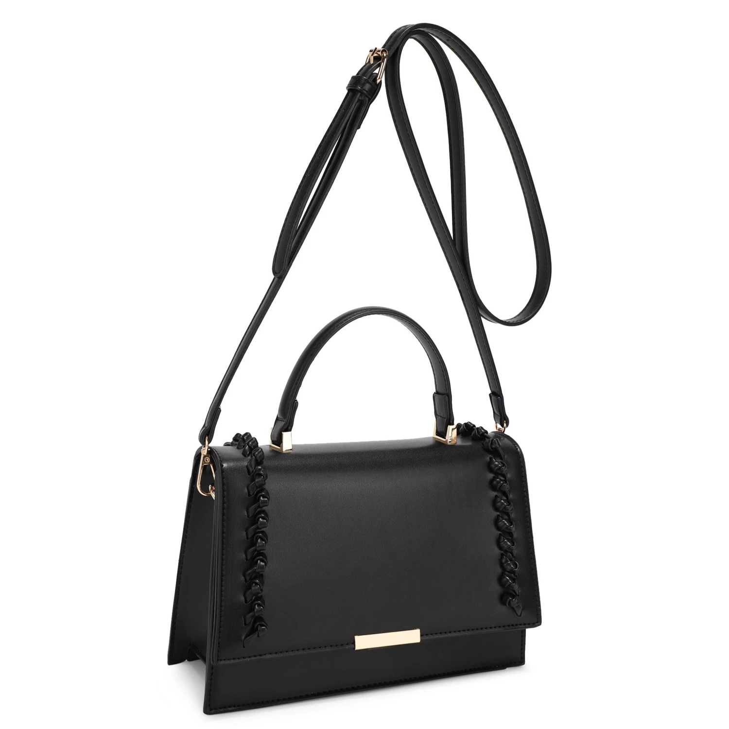 Features: 2 Straps, Braided Stitched Detail, Flap Shoulder Bag
