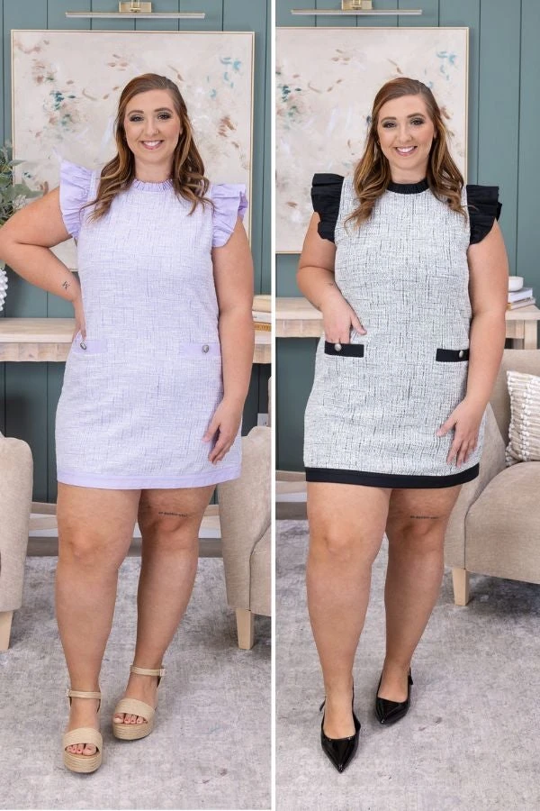 Features: Ruffle Mock Neck, Short Ruffle Sleeves, Pockets, Lined