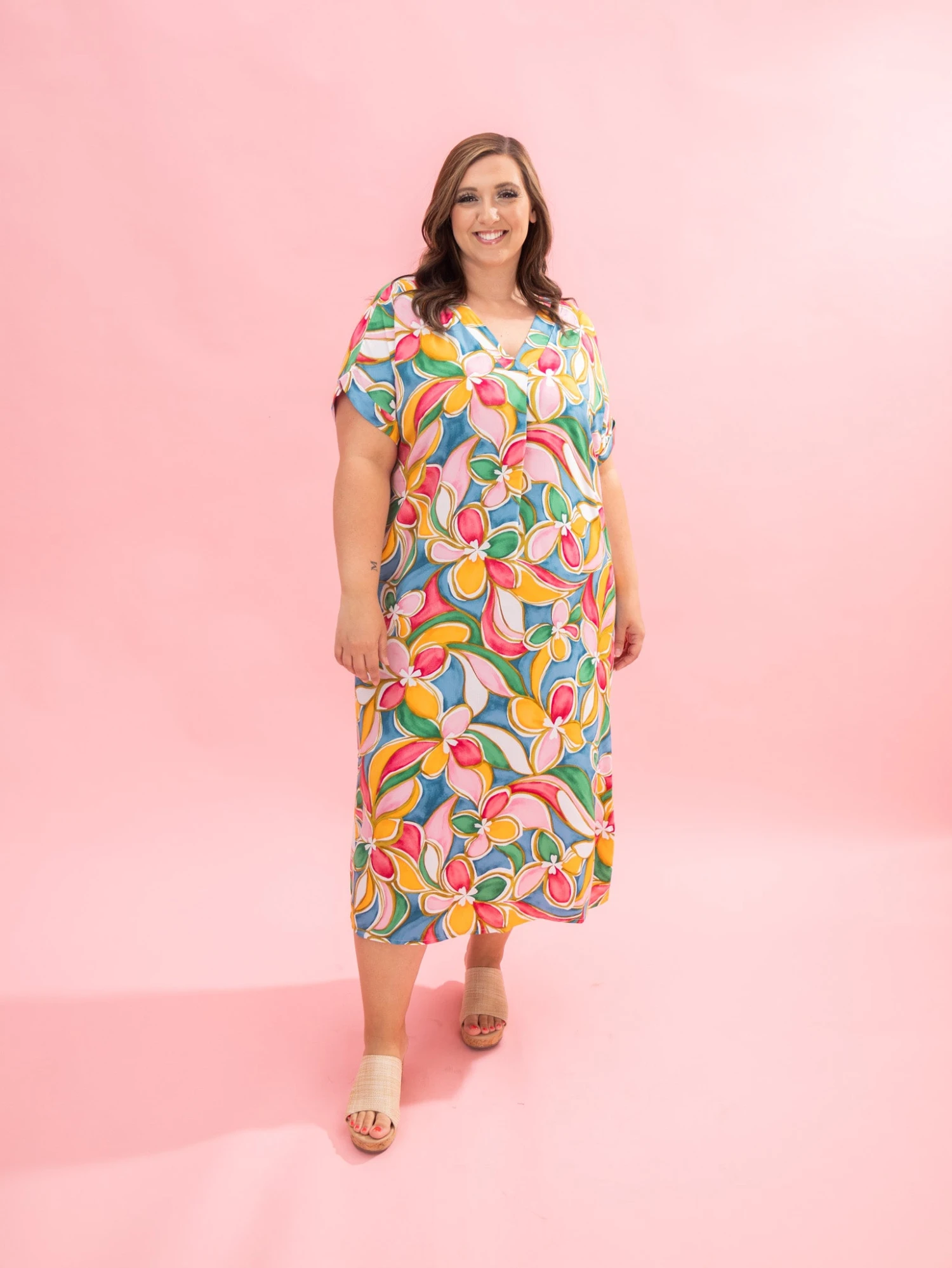 Features: V Neck, Capped Short Sleeves, Pockets, Printed, Airflow, Midi