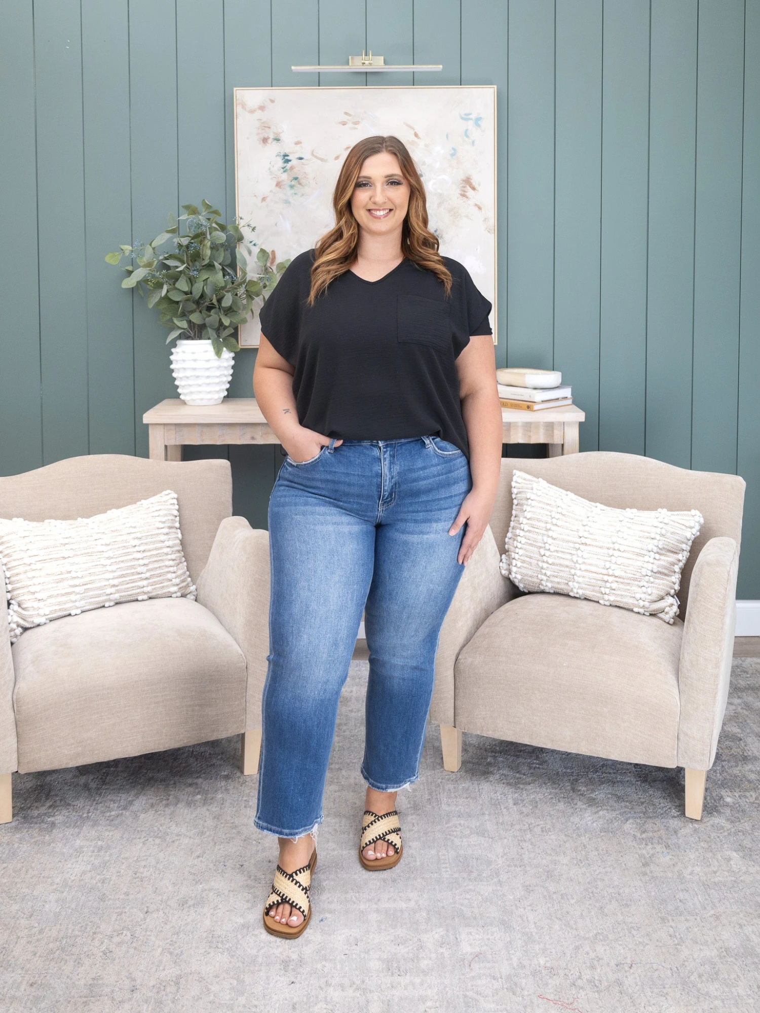 Erin is 5’8, 36C bra, typically wears size L/XL in tops and 14/15 in denim. Wearing size 15. These fit tts. The 15 is a locked and loaded fit for me. If you are between sizes you can size up for a looser fit or size down for a locked and loaded fit.