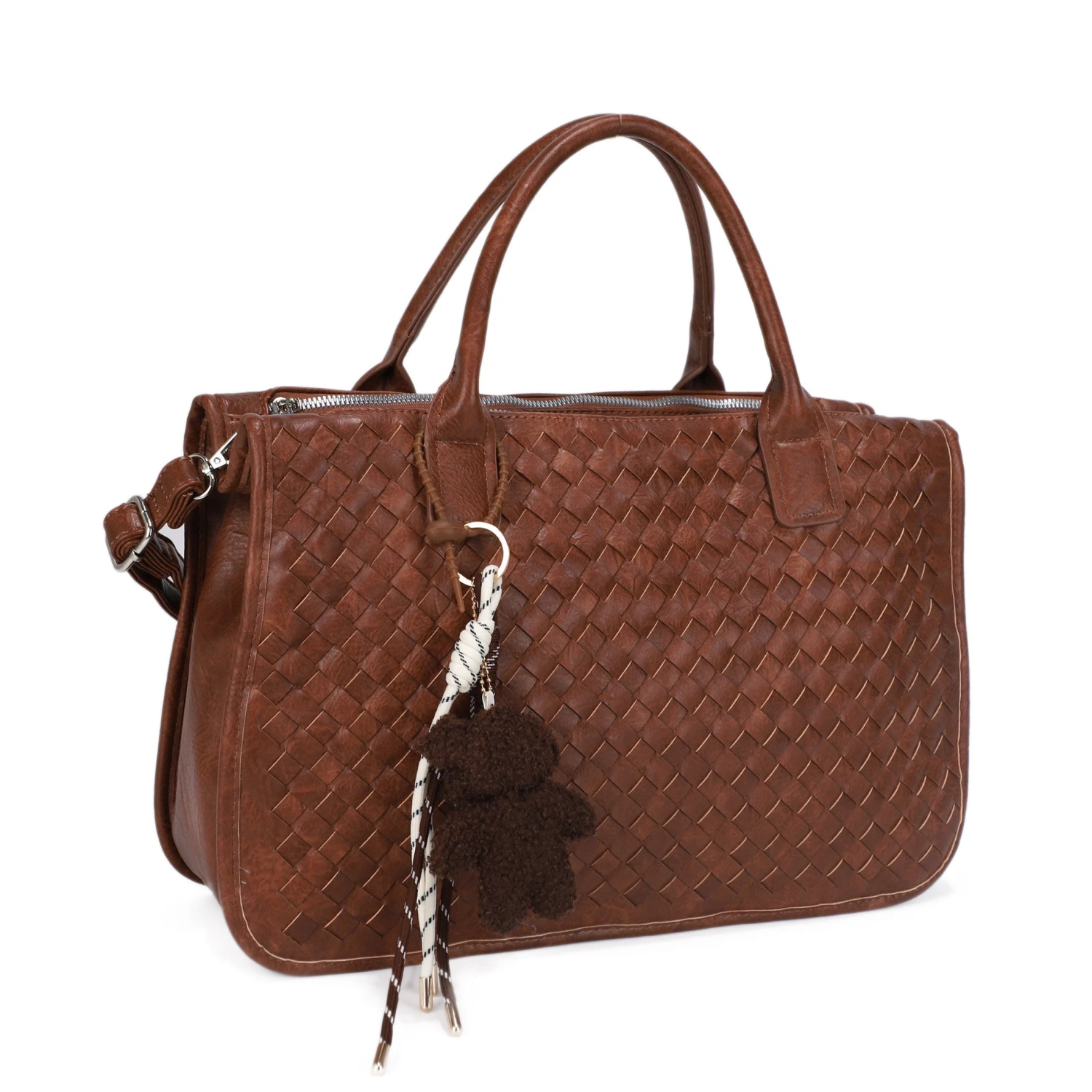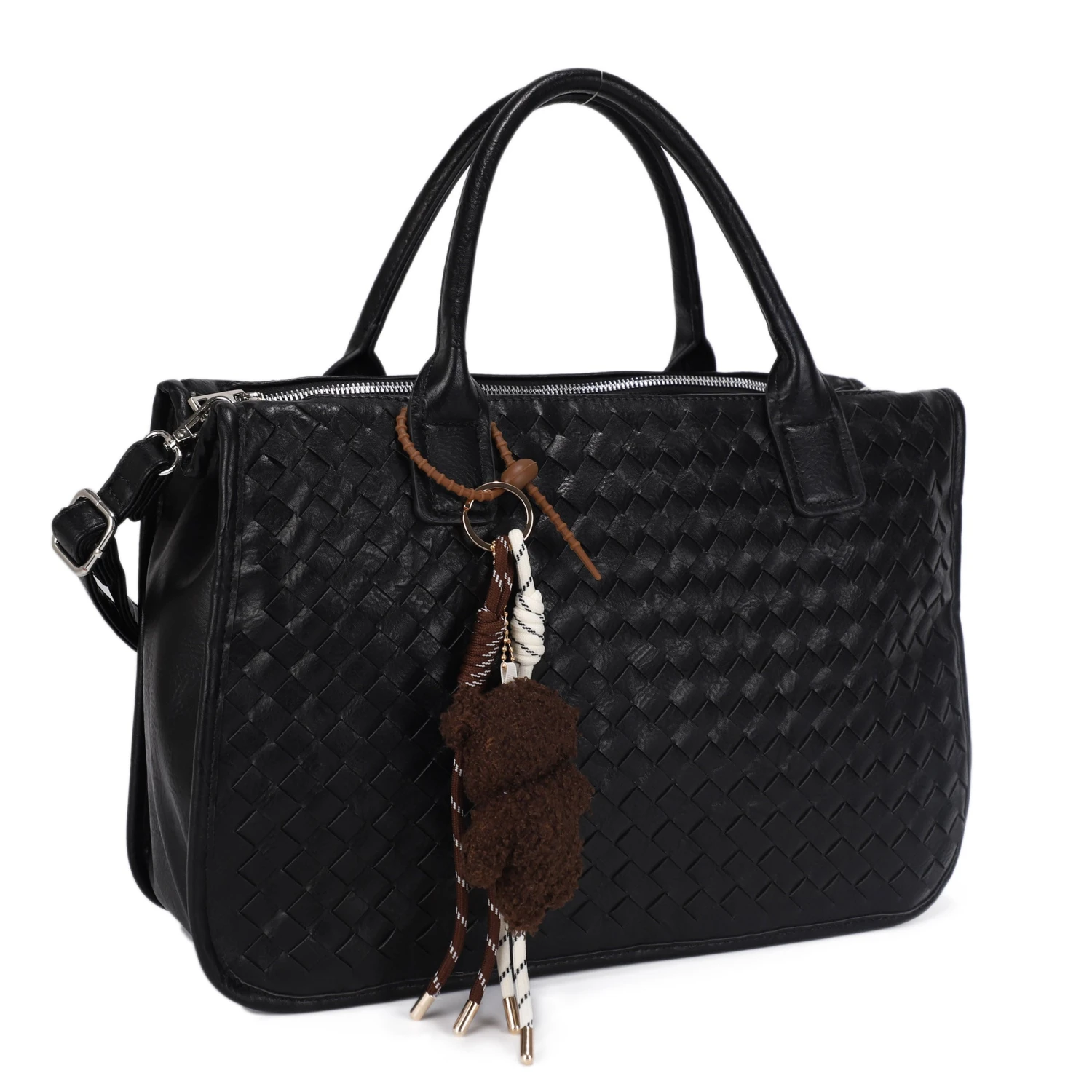 Features: Woven Handbag with Top Handles & Teddy Charm