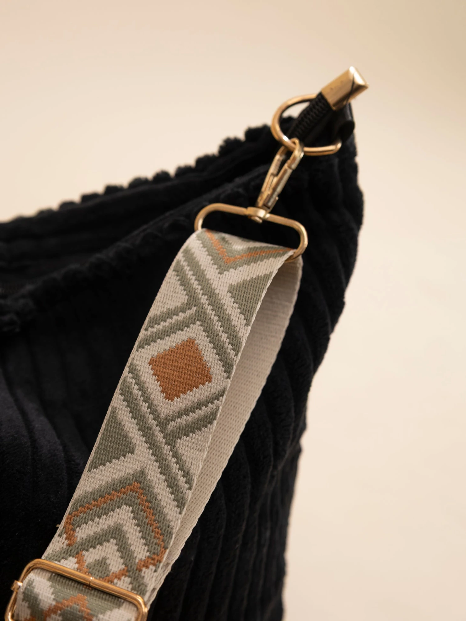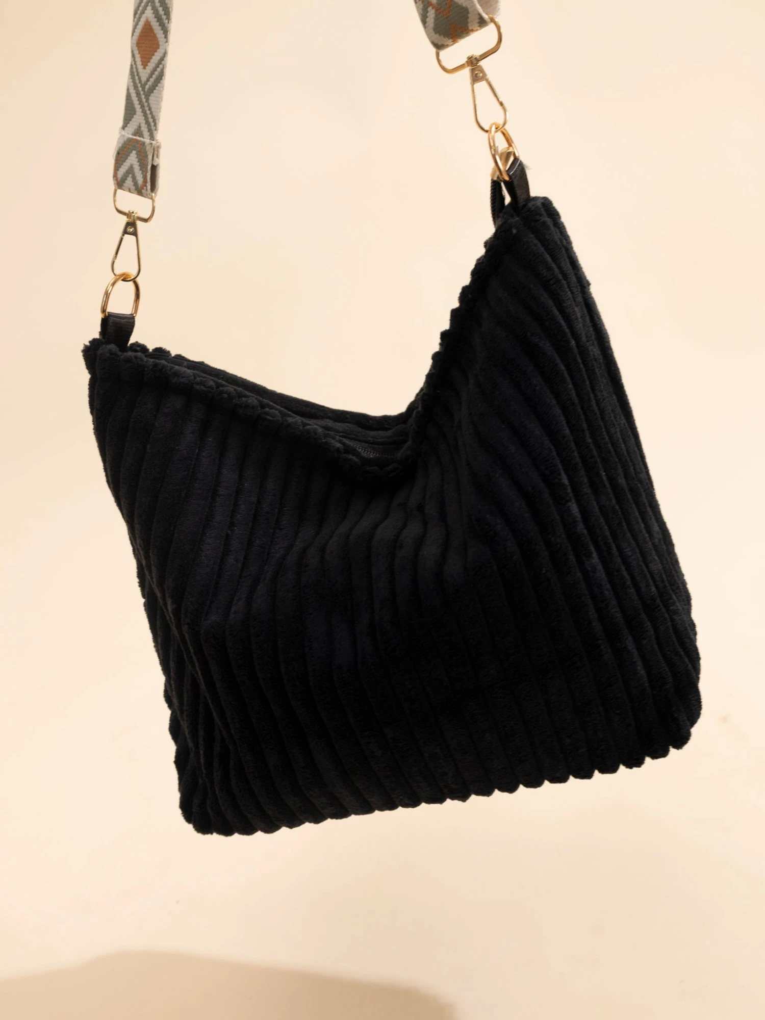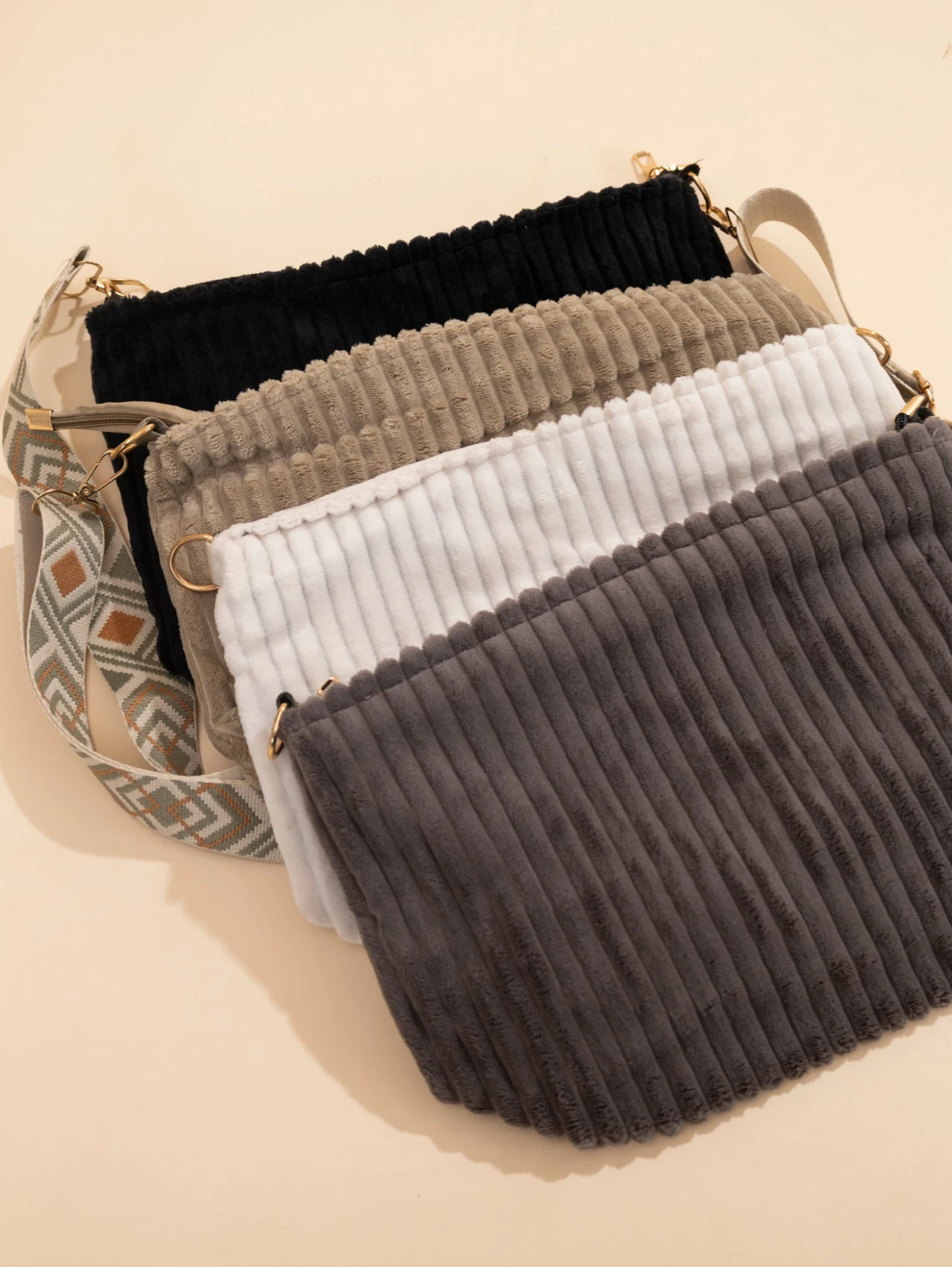 Features: Adjustable Shoulder Strap, Zipper Closure, No Compartments, Corduroy Textured Bag