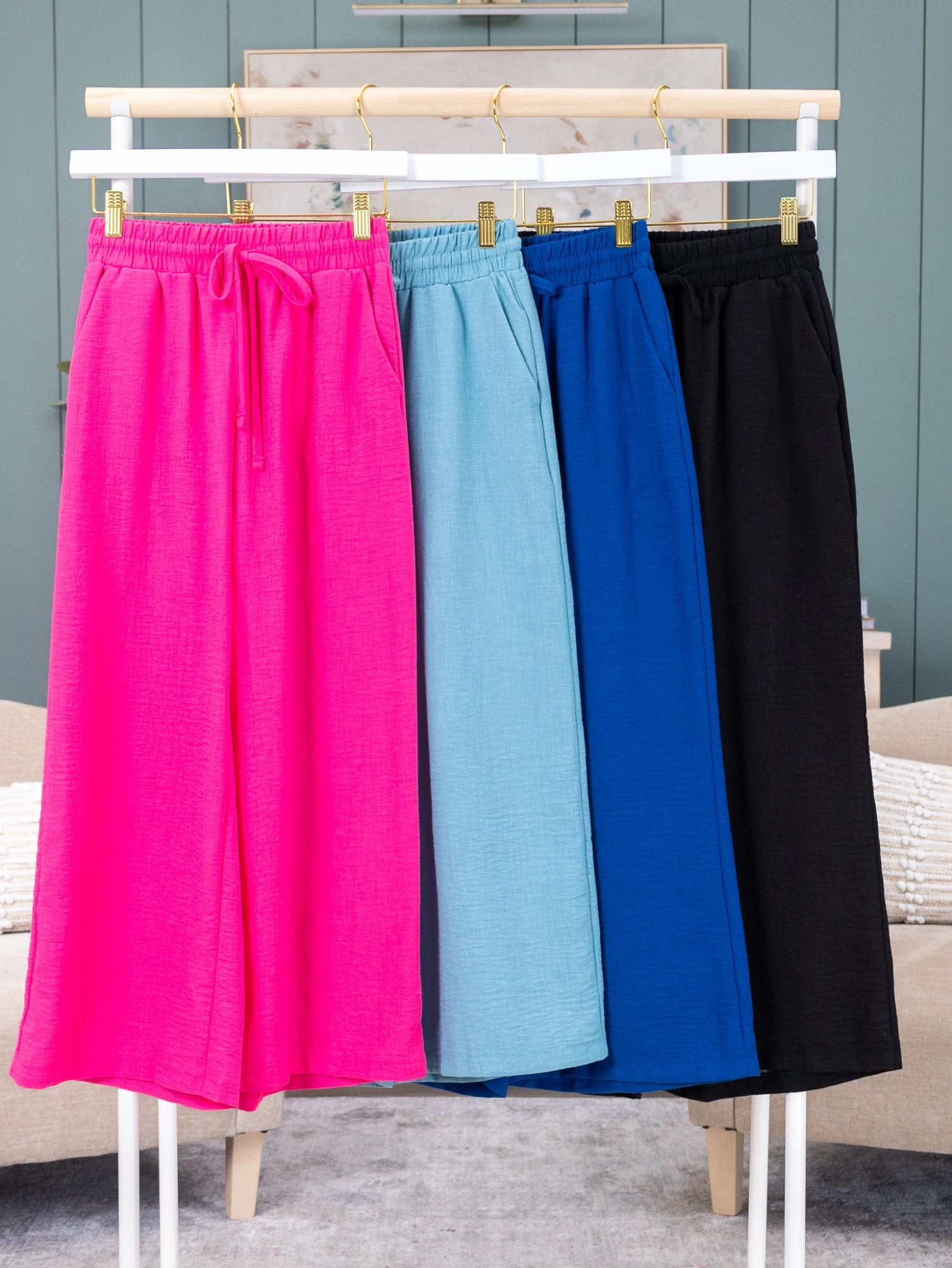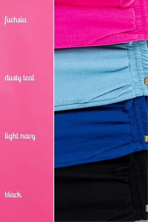 Made for comfort, these elastic waist pants have a drawstring for the perfect fit every time! Pair them with a tucked-in tee and sandals for a laid-back look or dress them up with a blouse and heels!
