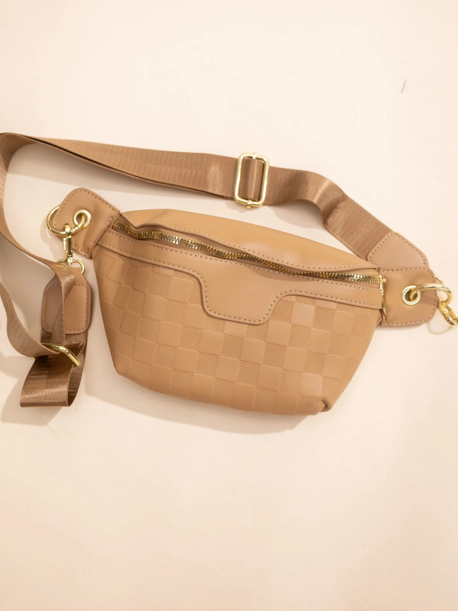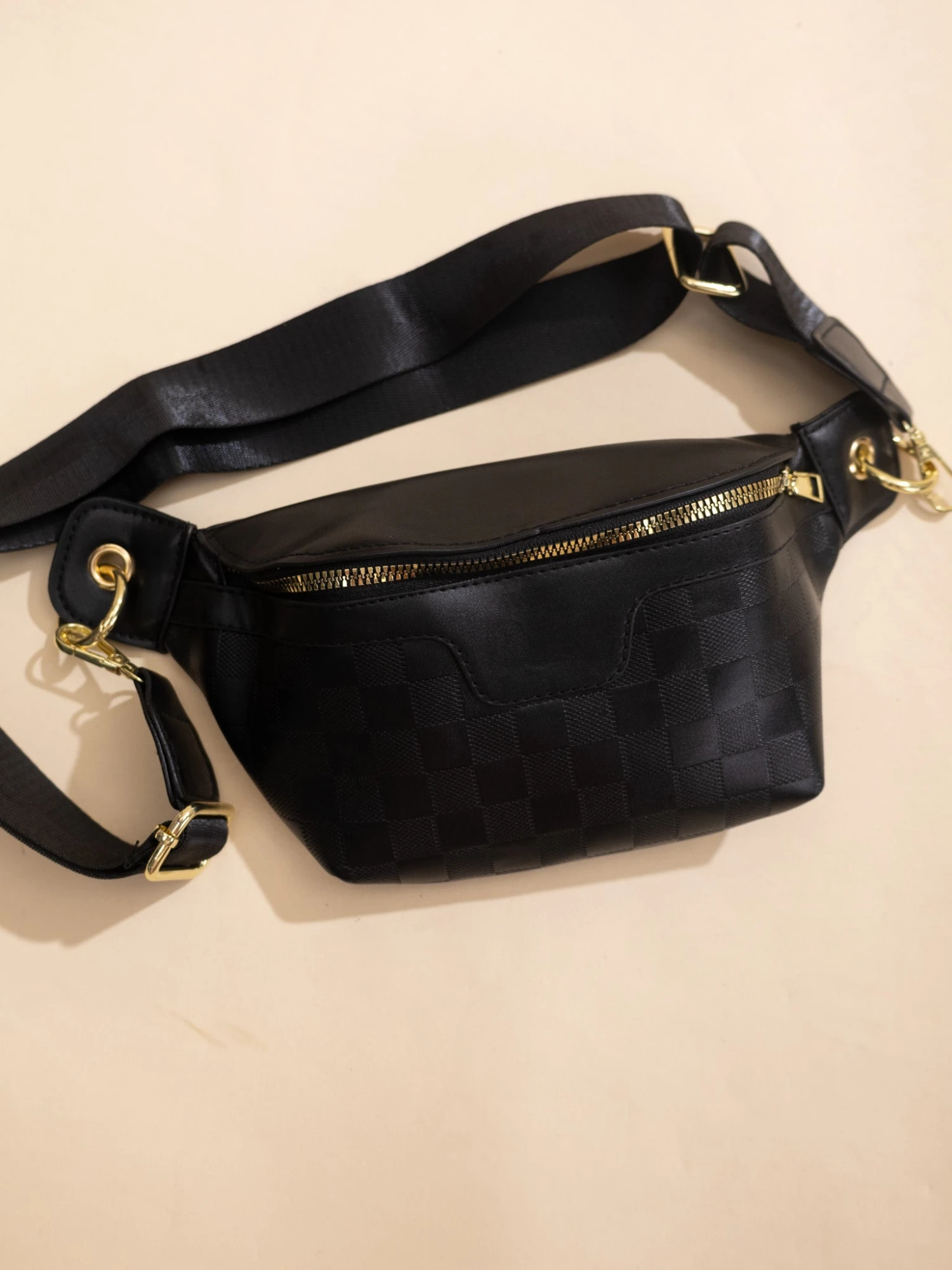 Features: Vegan Leather, One Zipper Pouch Inside, Checkered Crossbody Bag