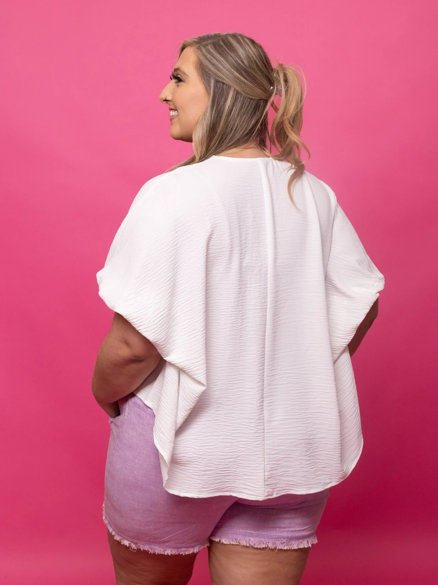 Erin is 5’9, 36C bra, typically wears size L/XL in tops and 14/16 in denim. Wearing size XL